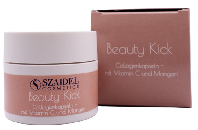 Our Beauty Kick Collagen Capsules are specially formulated to nourish and strengthen the skin from the inside out. Collagen is an essential protein that supports the structural integrity of the skin, giving it elasticity and reducing the appearance of fine lines and wrinkles. With our high-quality collagen, it gets the support it needs to look firmer and more youthful.